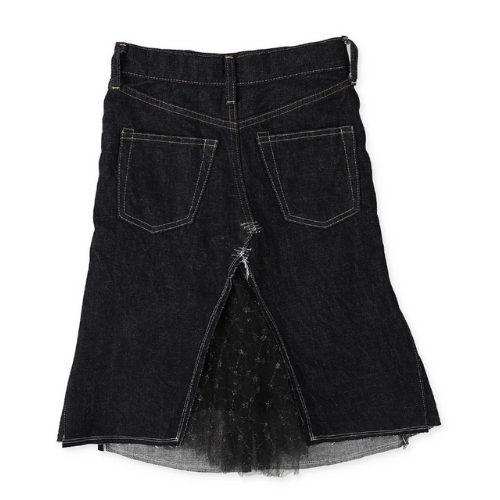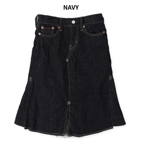セルビッチ付きの5ポケットデニムを膝下丈のスカートにリメイクした、人気で何度もリピートしている表と裏の顔のギャップが魅力のペルソナスカートです。